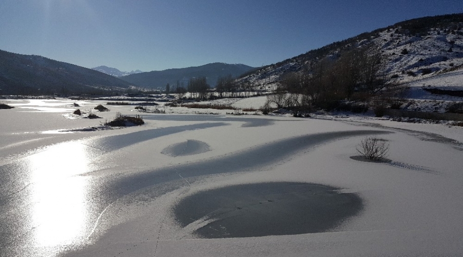 Bayburt-Kelkit yolu üzerinde bulunan Sadak Gölü'nün yüzeyi aşırı soğuklarla birlikte buz tuttu. Buz tutan göl, üzerine güneş ışınlarının da yansımasıyla kartpostallık...